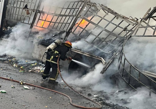أخمد عناصر الدفاع المدني حريقًا اندلع داخل شاحنة محمّلة بأكياس من رقائق البطاطا على أوتوستراد زوق مصبح – كسروان.